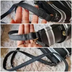 Bonita crossbody Tommy hilfiger original negro c/rayas gris y blanco, detalles de uso cómo se puede ver en las fotos dejó varias para su perfecta apreciación tiene detallitos de desgaste, se le despegó la gomita de la correa al principio(puedes pegarlo o mandar a restaurar). Mide 23cm alto X 21.5cm de ancho👜😍❗ PRECIO FIJO❗OJO!! Grabo antes de enviar por seguridad de mi prenda, corroborando su estado 👁️👁️