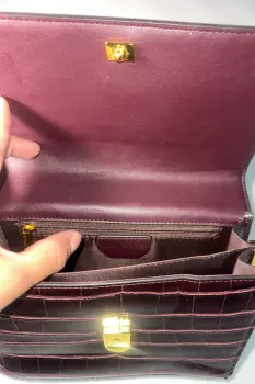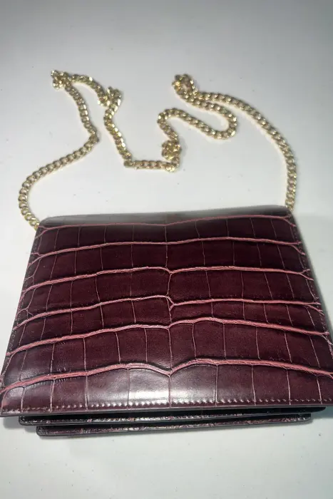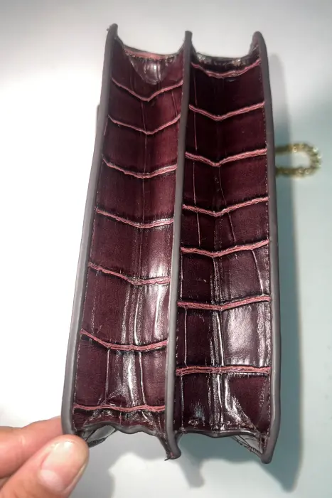 JW PEI Mini Flap Crossbody. El JW PEI Mini Flap Crossbody está confeccionado en piel vegana con grabado de cocodrilo y preciosos herrajes. Este sencillo bolso bandolera puede contener todo lo necesario y amplificar un look básico para hacerlo parecer más complejo. Cuenta con 2 bolsillos interiores, 1 bolsillo con cremallera. Medidas 20 cm ancho x 15,5 cm alto x 8 cm profundidad. Fue encontrado así en un bazar de Madrid.