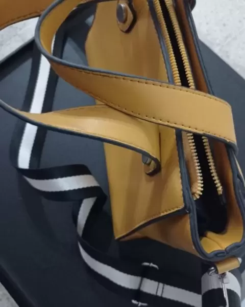 Linda bolsa de moda amarilla. Es una bolsa pequeña pero muy cómoda y le cabe un montón pues viene muy amplia está en excelente estado, como nueva