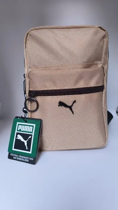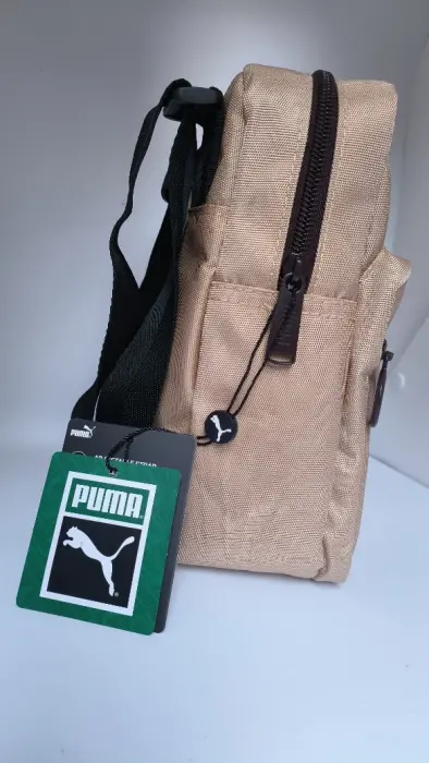 Mariconera Puma color café , correa ajustable cuenta con dos bolsas una de frente y la otra normal