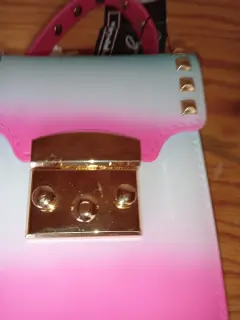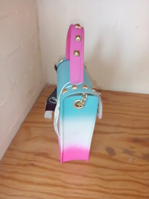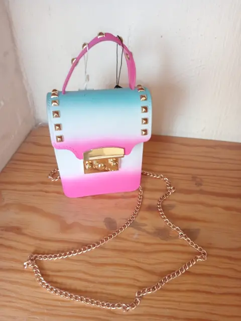Hermosa Mini BolsitaRectangular con remachesColor degradadoCadena larga en color doradoMuy coquetaNueva con etiqueta