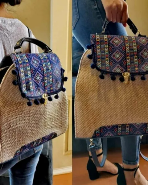 Mochila de yute. Elaborada de manos artesanas, es nueva.. Muy bonita