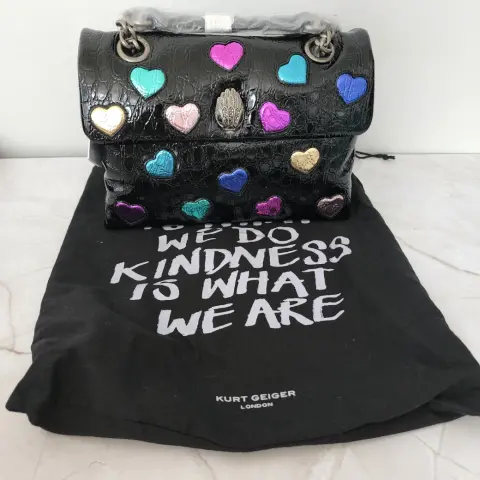 olsa Kurt Geiger corazones. Producto nuevo y originalPregunta por disponibilidadHermosa bolsa marca Kurt Geiger con corazones de colores. Por fuera es 100% piel.
