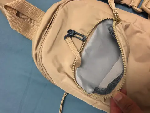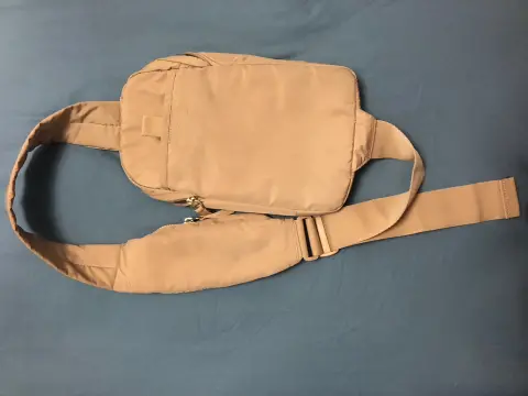 Práctica bandolera, compartimentó accesible para tener a la mano el celular. Color neutro combinable con todo