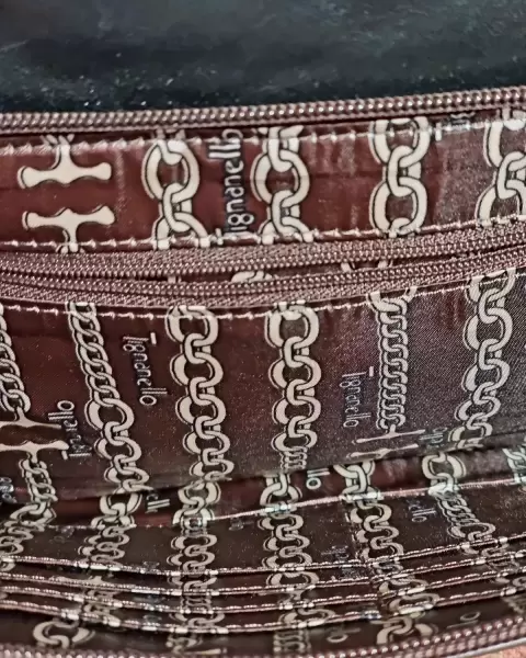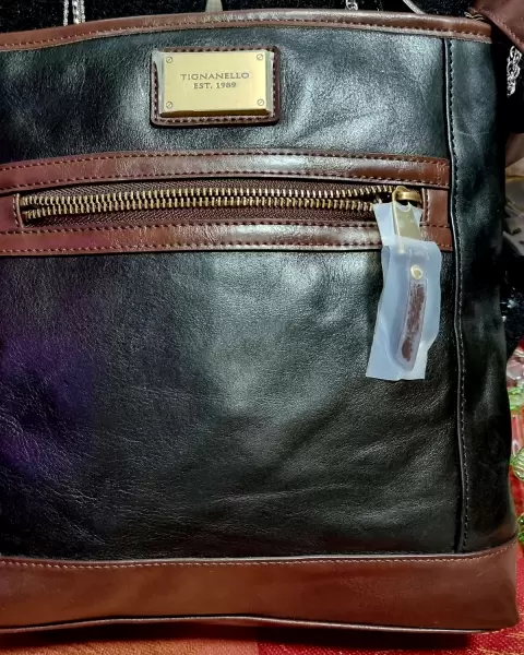 TIGNANELLO FUNCTION FRENZY Cross Body. Bolsones piel, convertible, cuenta con protección RFID en tarjetero exterior, que evita el robo de información de tus tarjetas. La correa se modifica para usarse de diferentes maneras (ver foto)Tiene herrajes dorados, 2 bolsillos con cierre exterior, mide 10.5" A x 10.5 de An. x 3" FTiene algún tiempo guardado y detalles por almacenamiento, pero es nuevo, ver interior.