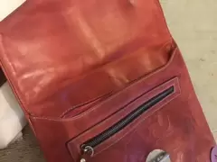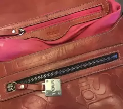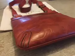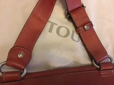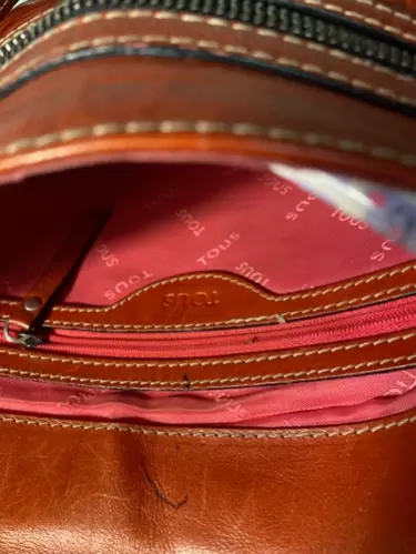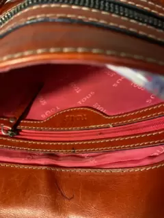 Bolsa de piel marca Tous en color rojo quemado, asa larga para usar cruzada. En muy buen estado externo, piel sin detalles, en la solapa interna tiene un rayón de pluma así como un pequeño en el asa, esto se ve en las fotos.