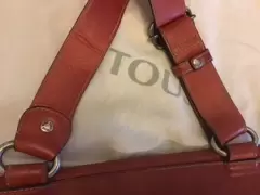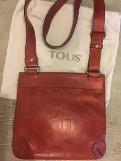 TOUS Bolsa mensajero. Bolsa de piel marca Tous en color rojo quemado, asa larga para usar cruzada. En muy buen estado externo, piel sin detalles, en la solapa interna tiene un rayón de pluma así como un pequeño en el asa, esto se ve en las fotos.