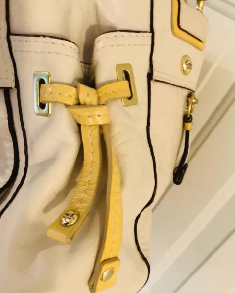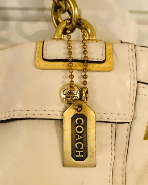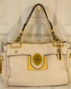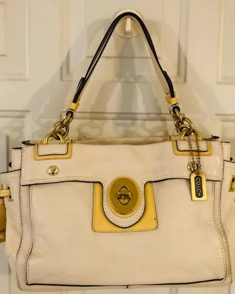 Exelentes condiciones 100%original muy linda bolsa coach de piel colosal crema con amarillo