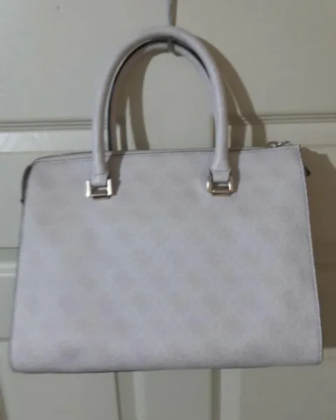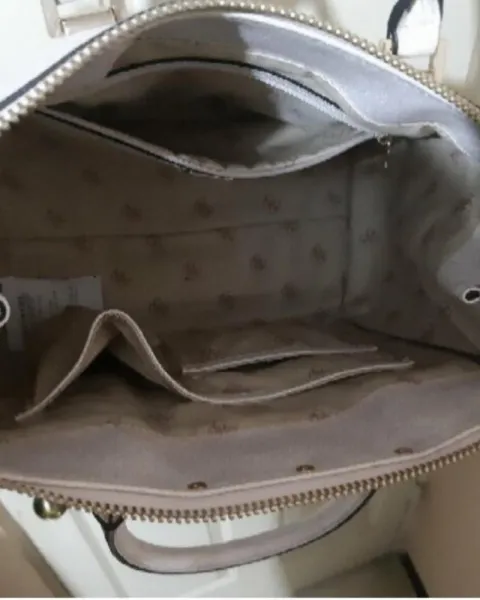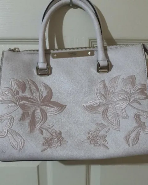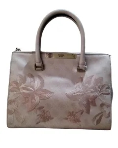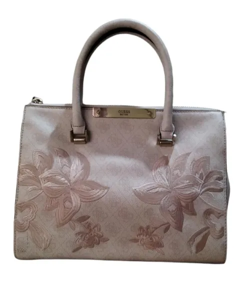 Hermosa bolsa GUESS, rosa-beige, con estampado bordado y una textura un poco rugosa... Buen estado, sin Correa.