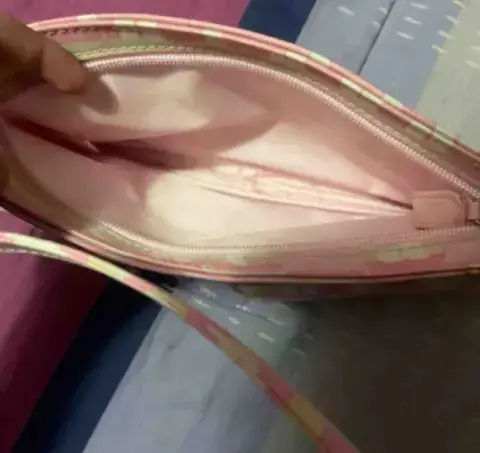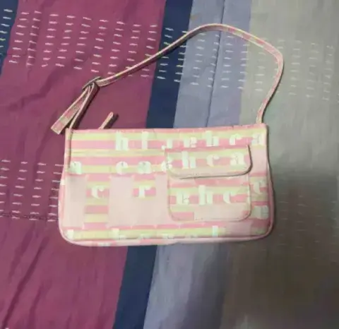 Bolsa mini de mano, rosita con blanco, para cualquier ocasión, los cierres funcionan bien