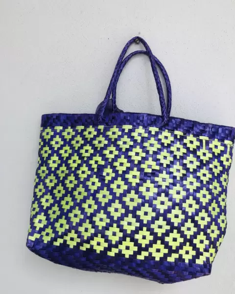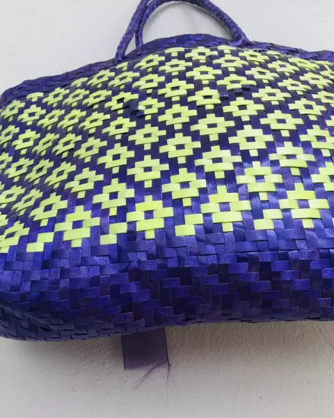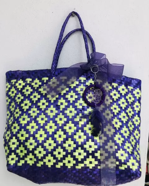 Bolsa artesanal morado y verde