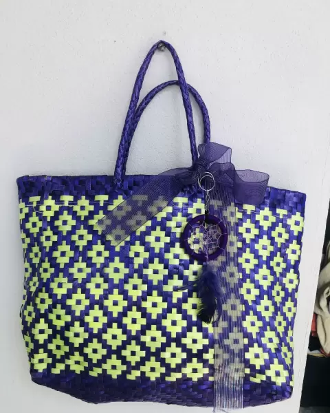 Bolsa artesanal morado y verde. Padrisima, colores vibrante, sin detalles