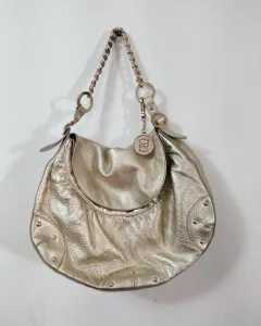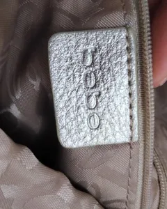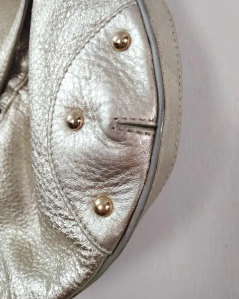 Bolsa Bebe. Bolsa Bebe dorada tiene una mancha pero es en el dobles así que no se nota para nada, también un poco de desgaste en la plaquita y el arnés del asa.