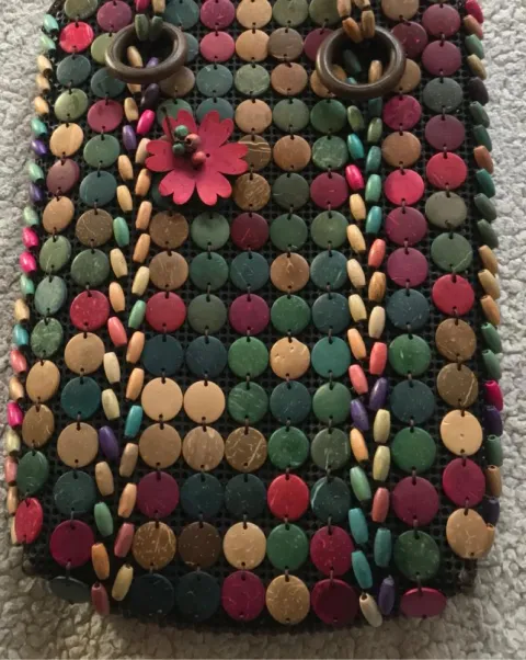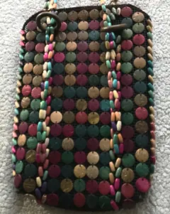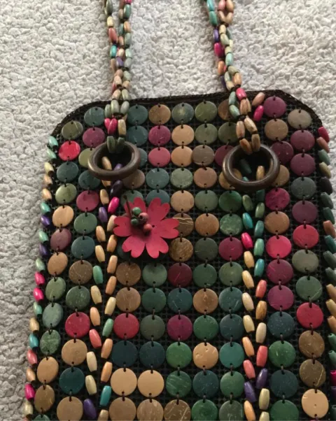Bolsa botones. Bolsa de mano con bisutería, de 36 cm de alto 24 de ancho y 6 cm de profundidad.