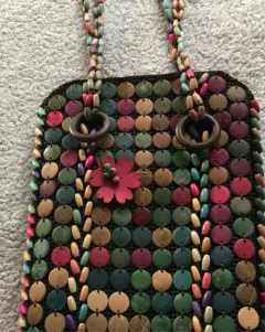 Bolsa de mano con bisutería, de 36 cm de alto 24 de ancho y 6 cm de profundidad.