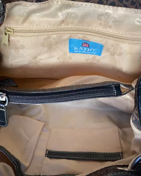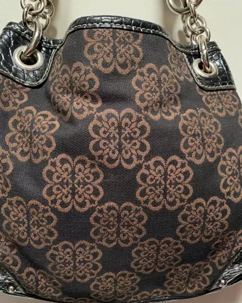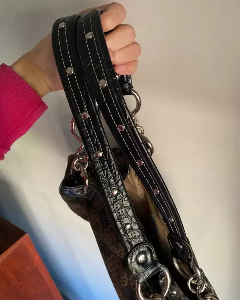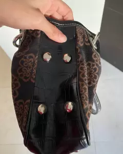 Bolsa negra y café con estoperoles en las agarraderas en excelente estado. No rota, no rasgada, limpia y forro limpio