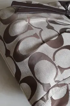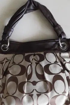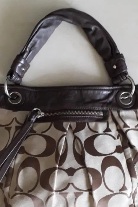 Bolsa Coach cafe. Bolsa Coach cafe, piel con tela, amplia, le caben muchas cosas, comoda, tiene una bolsa al frente... envio en caja reciclada