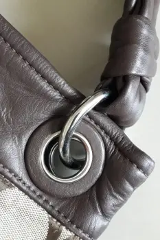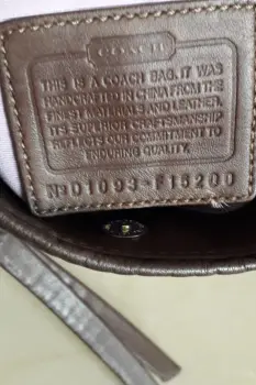 Bolsa Coach cafe, piel con tela, amplia, le caben muchas cosas, comoda, tiene una bolsa al frente... envio en caja reciclada