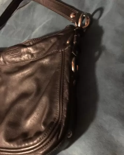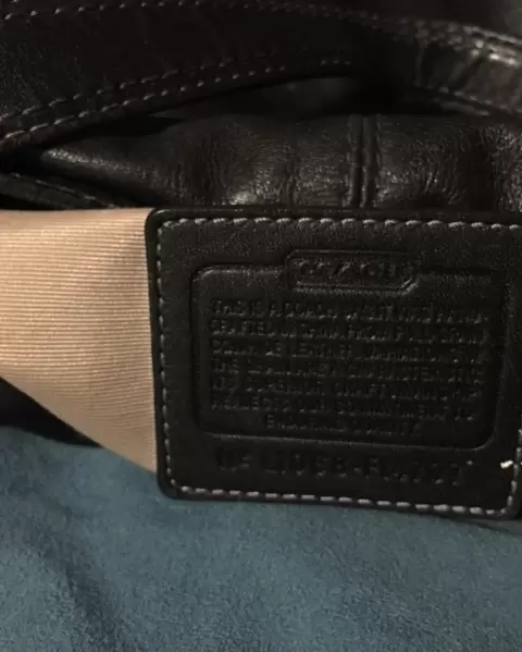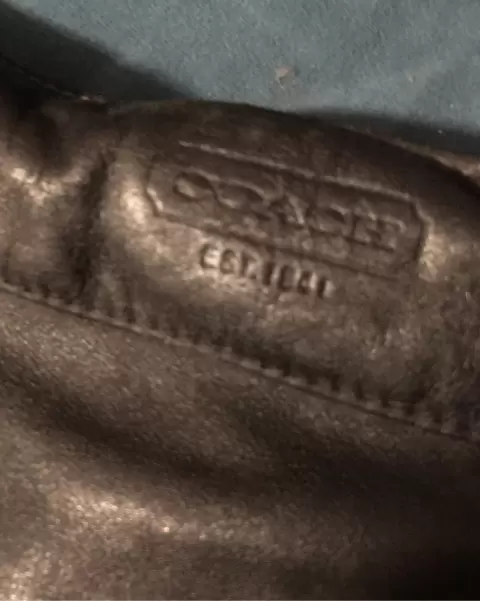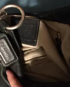 Bolsa Coach de piel, en condiciones de uso normal, sin detalles ni reparaciones, 32 cm de largo, 24 cm ancho