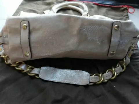Edición limitadainterior tiene un bolsillo con cremallera grande y 1 bolsillo abierto El forro sedoso es de color lavanda. El exterior es un hermoso color beige brillante que parece diamantes brillantes. 3 etiquetas colgantes con cierre total de cremallera superior, un correa de hombro extraíble (20 pulgadas de largo). 13 "de largo x 5" de ancho x 9 "de alto