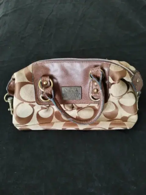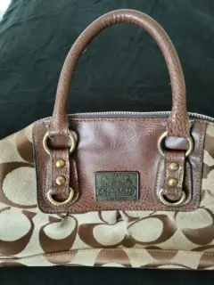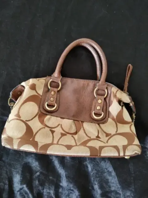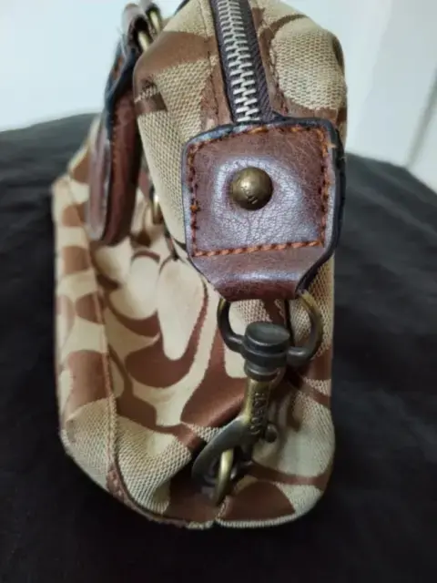 Bolsa Coach monograma. Bonita bolsa Coach monograma de mano, color café, es piel y tela, súper combinable. Tiene algunos detalles de uso, pero aún le queda mucha vida de uso.