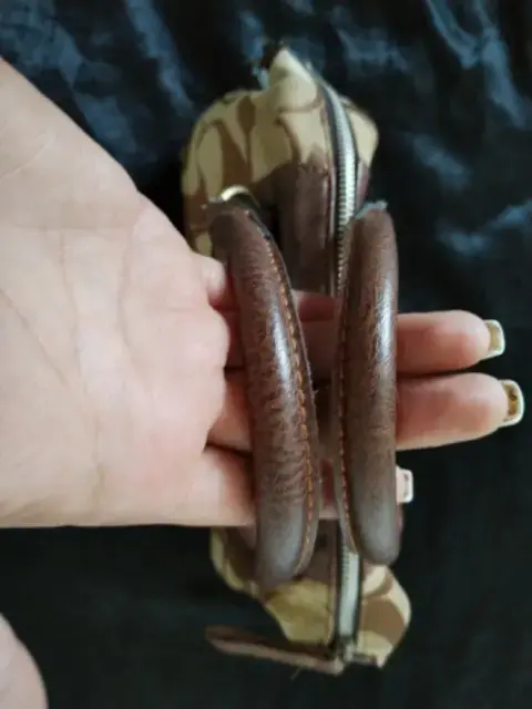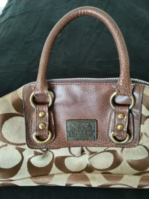 Bonita bolsa Coach monograma de mano, color café, es piel y tela, súper combinable. Tiene algunos detalles de uso, pero aún le queda mucha vida de uso.