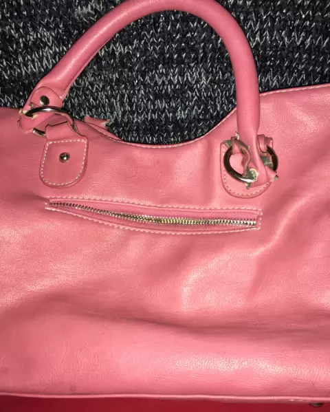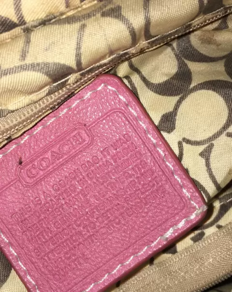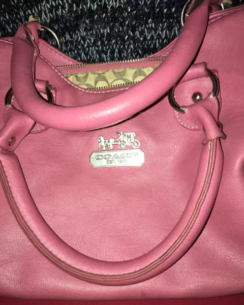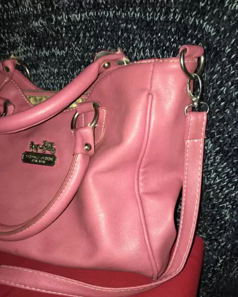 Bolsa rosa Coach detalles de uso normal, tiene detalle en el cierre de atrás, 33 cm de largo por 24 cm de alto