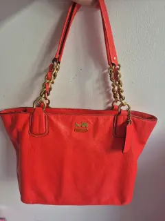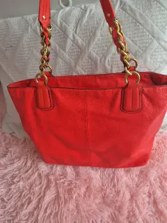 Bolsa color coral Tote, en excelente estado. Bolsa mediana, forro de tela, en excelente estado tambien, asas con cadena a la mitad, muy versatil, viene con cubrepolvo