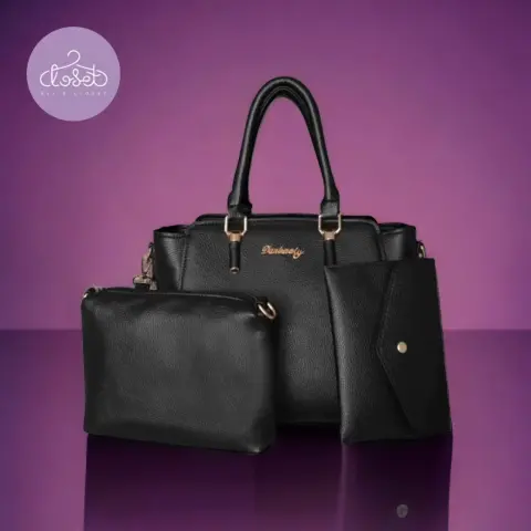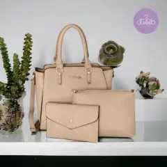 Set de Bolsa, cosmetiquera y monederoDisponible en negro y beige