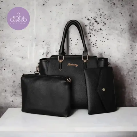 Bolsa, cosmetiquera y monedero. Set de Bolsa, cosmetiquera y monederoDisponible en negro y beige