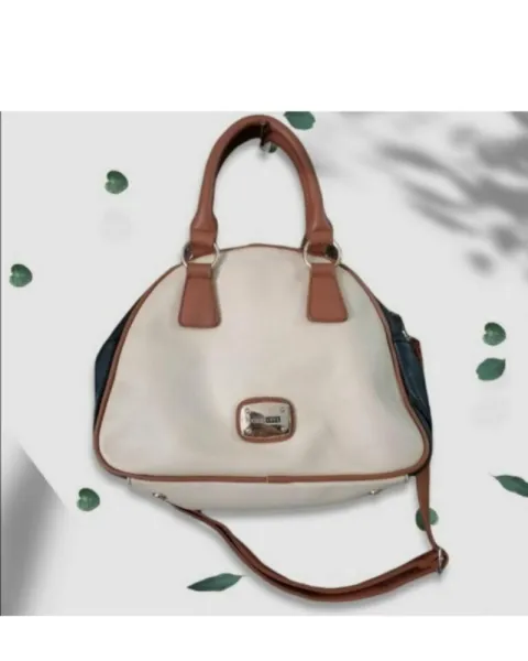 Bonita bolsa Crabtree en color camel/beige/negro con asa que la puedes alargar o acortar es sintética, por dentro tiene buen espacio y bolsitas interiores, por la parte trasera tiene una mancha de la mezclilla no es muy notoria. Medidas 31cm ancho, 23 largo 13cm de asiento
