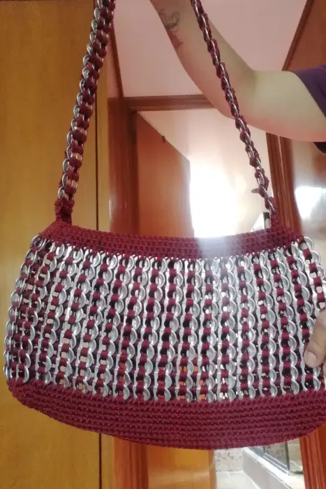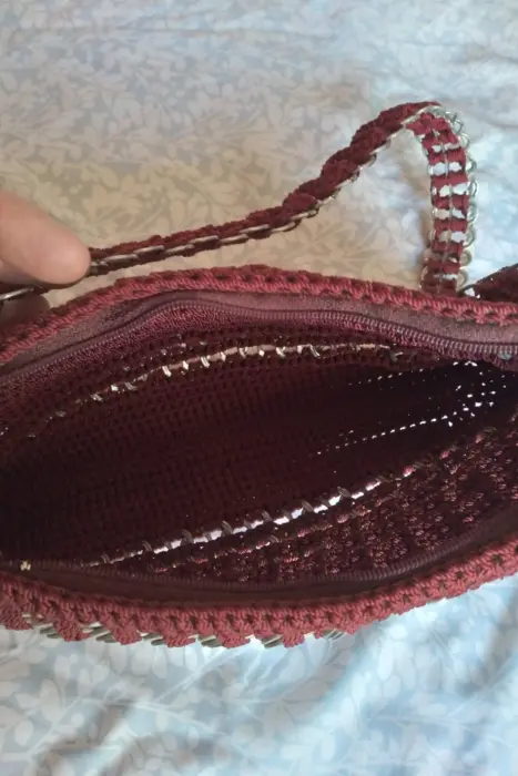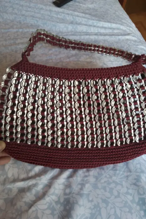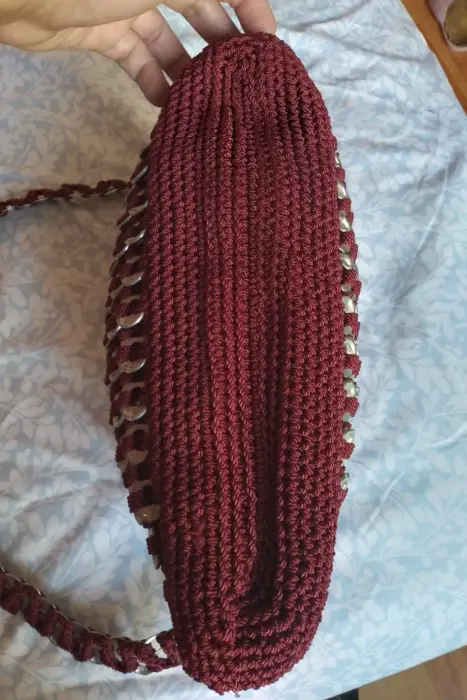 Bolsa de crochet y aluminio color vino. Bolsa nueva de crochet con detalles en aluminioLargo 28cmAncho 8 cmAlto 18 cm