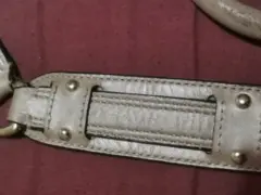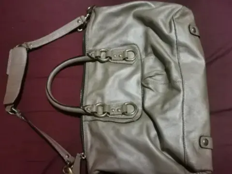 Hermosa bolsa de HOMBRO DE CUERO color ocre tamaño mediano herrajes cintas forro cierres broches perfectos solo algo desgaste en asas que ni se nota tiene su TAG de la marca y e ideal en el carrito de auténtica.