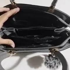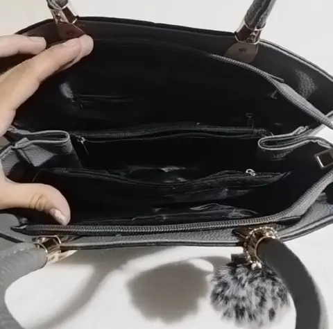 Es una bolsa de mano, de tamaño accesible y con varios compartimentos