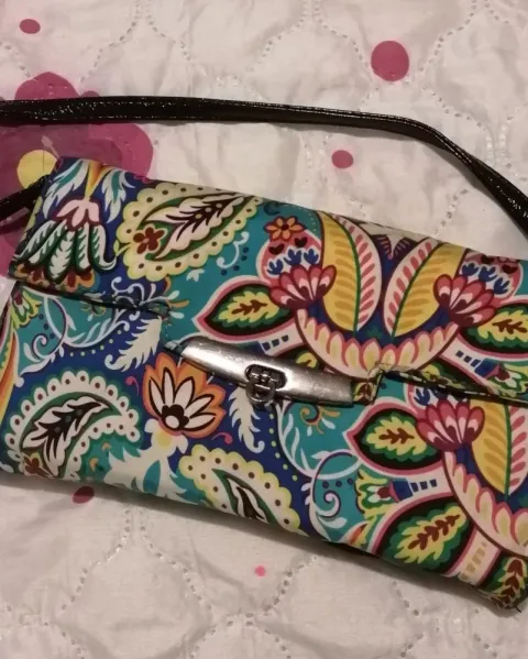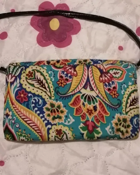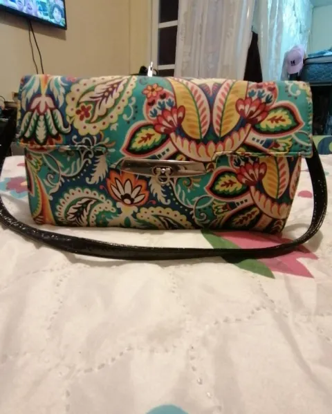 Bolsa de mano floreado. Esta en perfecto estado solo esta un poco arrugado por que estaba guardada, le caben varias cosas como celulares, cartera y maquillajes.