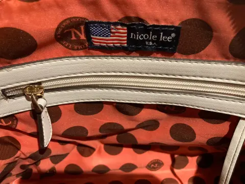 Bolsa de mano Nicole Lee. Con cierres dorados, de tamaño mediano, con asa larga adicional para colgar