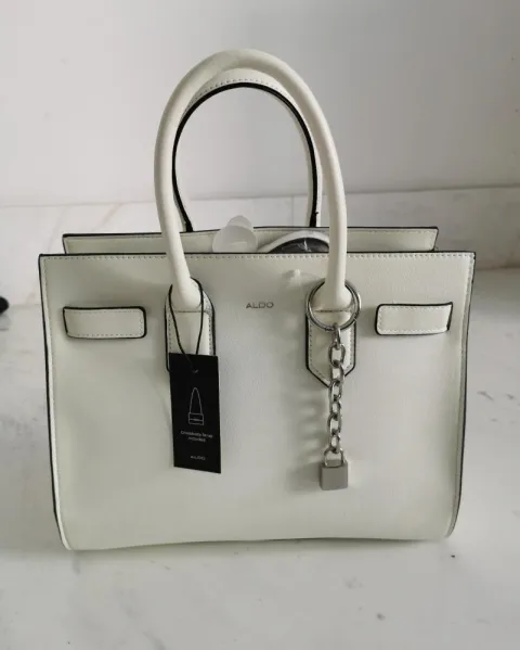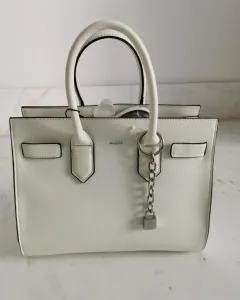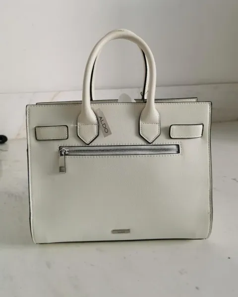 Bolsa de mano nueva Aldo. Bolsa de mano Nueva. Acabado imitación piel de color blanco. En la parte de atras tiene un bolsillo de jareta con siper. Al interior tiene 2 compartimentos separados por un bolsillo con siper, además en un costado tiene un bolsillo de jareta con siper y en el otro costado 2 bolsillos de parche.