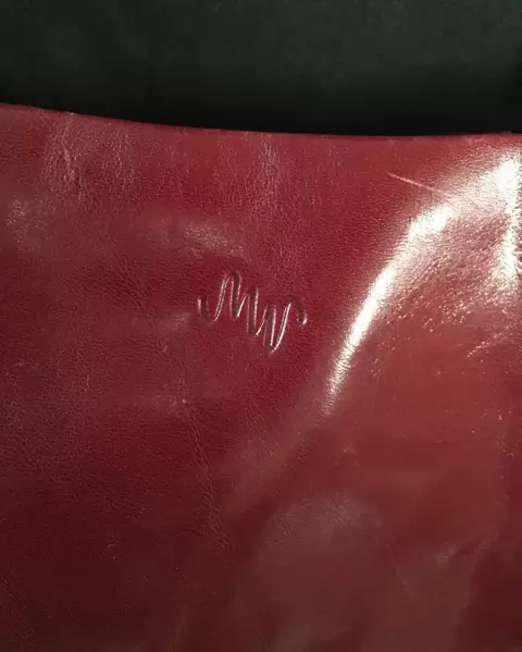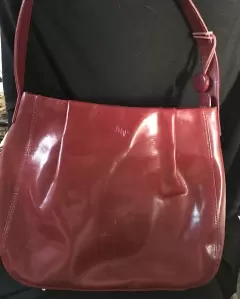 Bolsa roja piel Monsac, sin detalles en buenas condiciones, 34 cm de ancho, 26 cm de alto