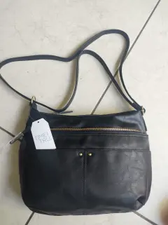 Bolsa de piel negra, buen tamaño con varios compartimentos, excelente calidad y precio