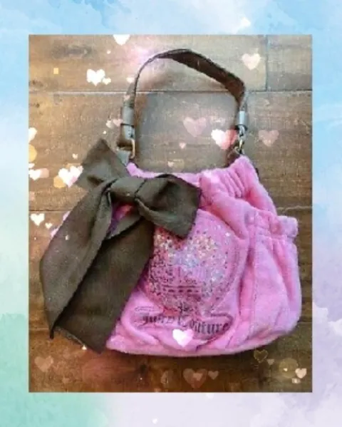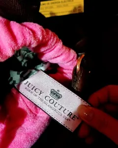 Bolsa de terciopelo Juicy couture. Hermosa bolsa de la marca Juicy couture, diseñada en terciopelo rosa con asas de piel color café. En excelentes condiciones.