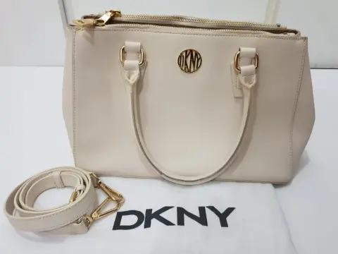 Bolsa DINY. Hermosa bolsa color hueso. Tiene desgaste en las asas, sin que sea obstáculo para lucir hermosa y elegante.Incluye asa larga para usar crossbody.