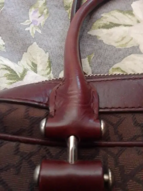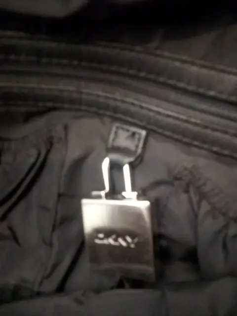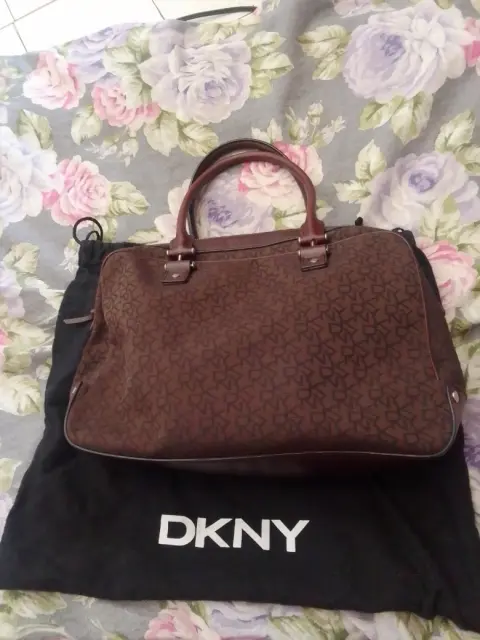 Bolsa DKNY PIEL Y TELA C LOGO. Bolsa mediana de piel tipo maletín. Acabado en piel . Tela con logo. Perfecto estado. Con morral original. Guardada