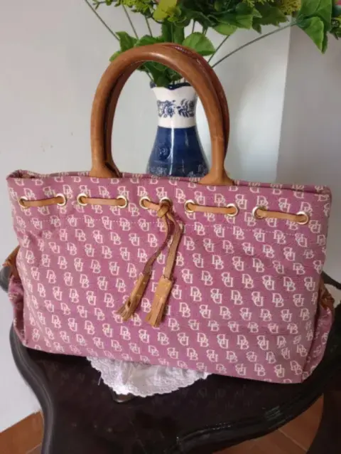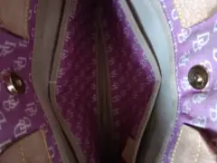 Bolsa Dooney & Bourke, en buenas condiciones. Con broche y cuatro compartimentos internos. Medidas 33 cm de largo y 20 cm alto. Tiene una pequeña mancha en la parte inferior (foto 5), algo de desgaste en la correa (foto 6) y desgaste en las orillas superiores (foto 7).