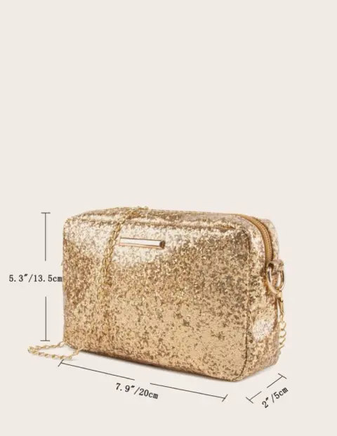 Hermoso bolso dorado con lentejuelas plastificada, excelente para eventos de noche, brilla súper padre…🌟🌟🌟