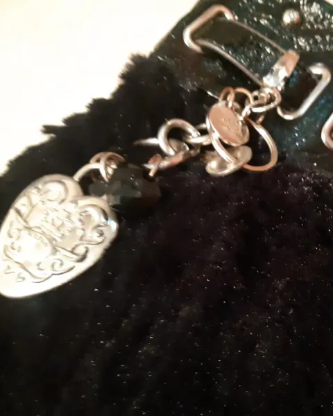 Bolsa negra con detalle de peluche y llavero incluido super bonita muy original