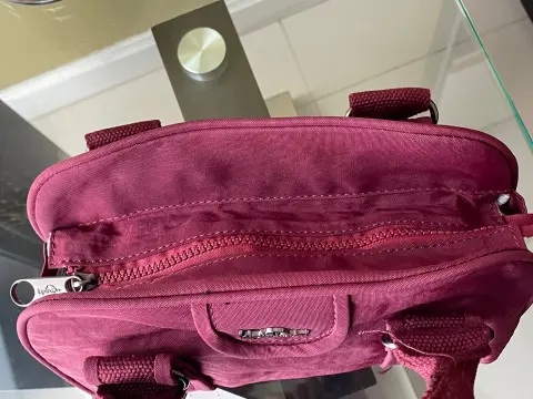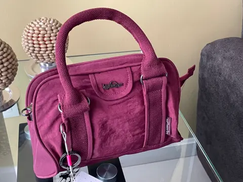 Bolsa Kipling original. Bolsa con asas pequeñas y correa larga, 22 cms de ancho y 18 cms largo, cierre interior
