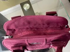 Bolsa con asas pequeñas y correa larga, 22 cms de ancho y 18 cms largo, cierre interior