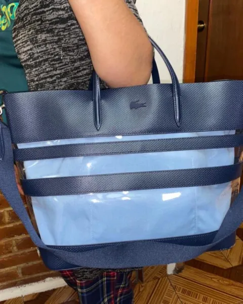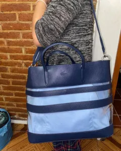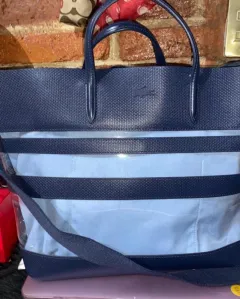 Bolsa Lacoste. Bolsa Lacoste azul marino con alzas y correa rígidas, la correa mide aproximadamente 20 cm se usó dos veces y solo tiene un poco de raspón en la esquina como se ve en las fotos