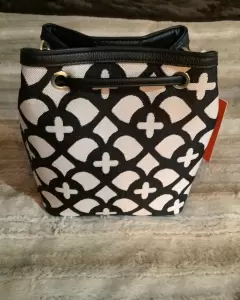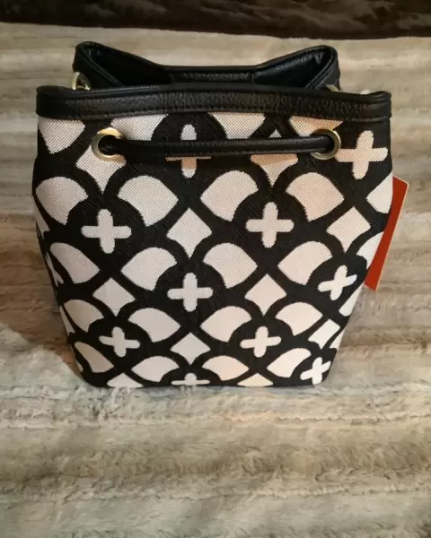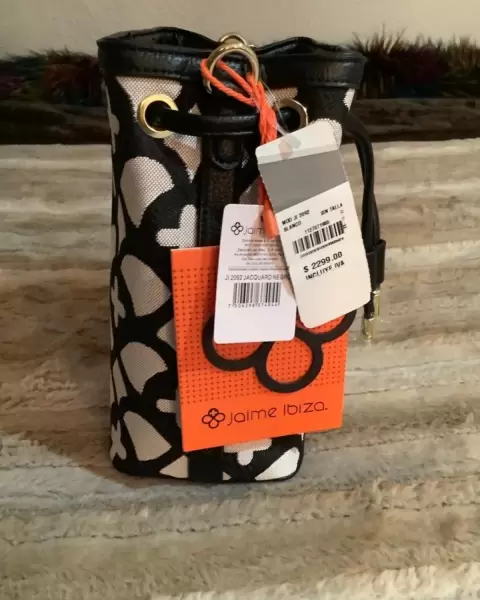 BOLSA MOD BOUCKET. ESTA INCREIBLEDISEÑO NUEVOBOLSA ELEGANTE COLOR BEIGE CON NEGRO