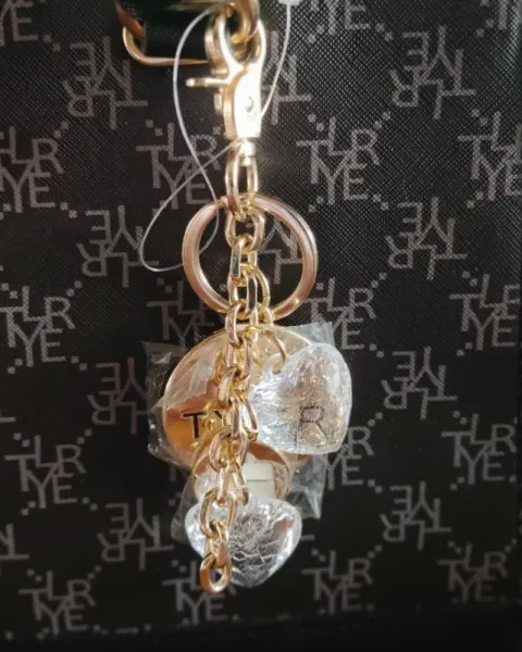 Bolsa de mano amplia , trae su correa para poder colgarla , un llavero con corazones de la misma marca
